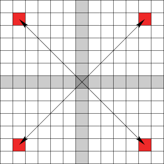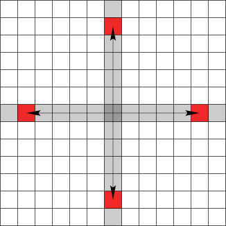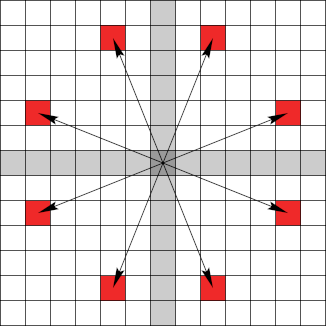 Dies erhöht selbstverständlich die Anzahl der infrage kommenden Quellorte. An dieser Stelle muss erwähnt werden, dass die bisher betrachteten Zielvektoren noch nicht tatsächlich zu den Gems führen. Sie sind eher als »Prototyp« – im Sinne einer Äquivalenzklasse – für mehrere, genaue Zielvektoren aufzufassen.