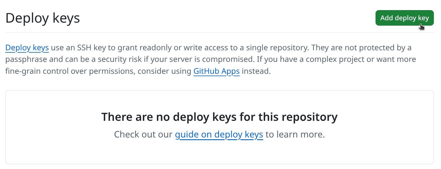 …und hinterlege unter »Deploy Keys« deinen Schlüssel, indem du auf »Add deploy key« klickst: