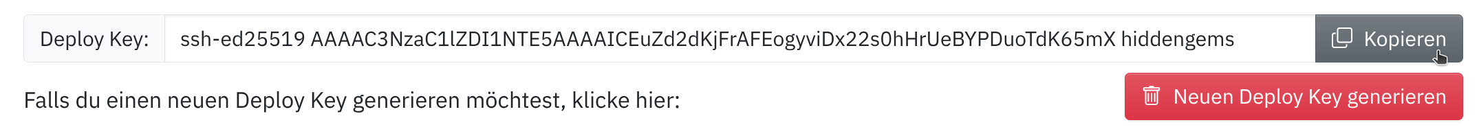 Damit wir deinen Bot ausführen können, musst du uns Lesezugriff auf dein Repository geben. Das funktioniert am einfachsten mit einem sogenannten Deploy Key. Gehe dafür in dein Profil und kopiere deinen Deploy Key in die Zwischenablage: