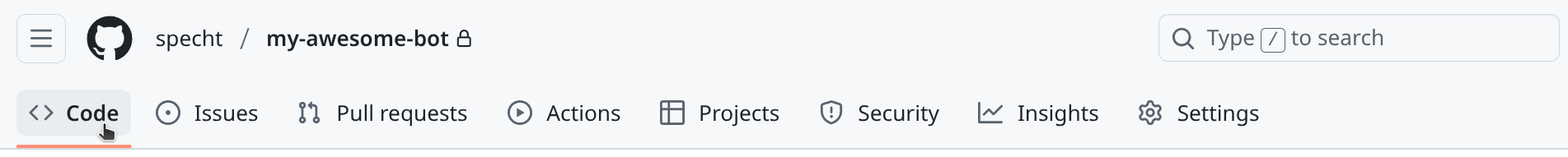 Damit wir deinen Bot ausführen können, musst du uns noch die URL deines Repositorys mitteilen. Klicke dafür wieder auf »Code«: