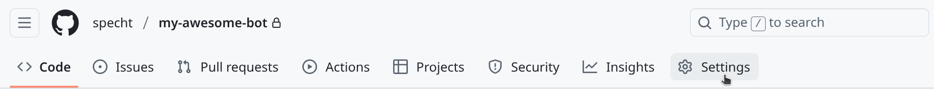 Öffne nun die Einstellungen deines Repositorys (Settings):